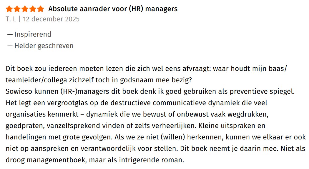 ‘Echt een beknellend verhaal om te lezen. Toch las het fijn weg, net als je vorige boek. Ik kan me voorstellen dat lotgenoten dit graag zouden lezen. Goed gedaan!’